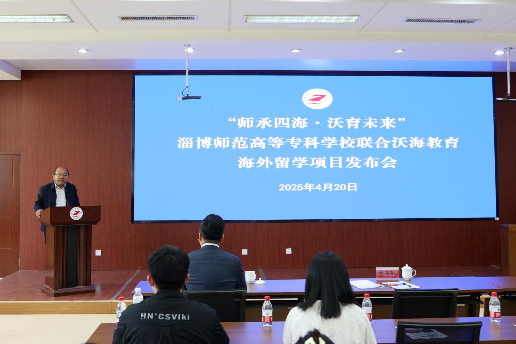 4月20日上午,“师承四海・沃育未来”淄博师范高等专科学校联合沃海教育海外留学项目发布会在淄博师范高等专科学校文德楼 301 会议室举行。党委委员、副校长焦玉利及相关部门同志、沃海教育集团总裁刘亚成以及众多教育机构代表出席本次会议。