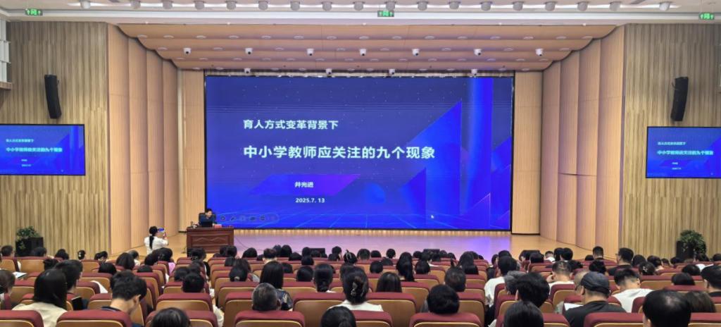 研修班邀请了多位省内外教育专家、知名校长和优秀教师,围绕育人方式变革、课程建设与实施、教育信息化融合、家校共育等热点话题,举办了一系列高规格的专题讲座。青岛市教育局重点项目办公室主任井光进作的《育人方式变革背景下中小学教师应关注的九个现象》讲座,深入剖析了当前中小学教育在育人方式上的新趋势和新挑战,为参训教师提供了全新的思考视角;原淄博柳泉中学党委书记、校长、齐鲁名校长孙辉以《事精致便已动人——学校管理做法分享》为题,以柳泉中学特色创建为例,阐释“精细管理、精准育人”的实践逻辑,把“普通校”办成“特色校”,让校长们深受启发;全国优秀教师、省特级教师、齐鲁名师,教育部中小学学科领军教师徐美华做题为《如何做课题研究》讲座。聚焦教师课题研究展开,助力教师开展课题研究;淄博师专副教授李迎冬为全体幼儿园园长、骨干教师作《幼儿园专题讲座》,助力学前教师课程创生能力提升。