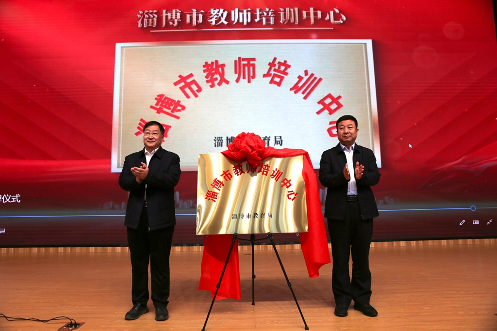3月22日上午,淄博师专举行淄博市教师培训中心揭牌仪式。淄博市委教育工委常务副书记、市教育局党组书记、局长孙英涛,淄博师专党委书记满军共同为淄博市教师培训中心揭牌。淄博师专党委副书记、校长高霞代表学校致辞,淄博市基础教育研究院党总支书记、院长孙水英宣读了关于同意在淄博师专成立淄博市教师培训中心的批复文件;淄博师专党委委员、副校长尹玉箫主持仪式;各区县教体局负责同志,市教育局、淄博师专有关负责同志和全市名师名校长名班主任培养人选等近300人参加仪式。