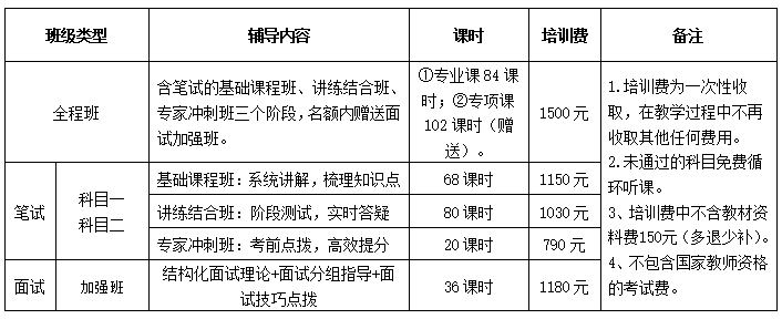 1.师资:聘请具有多年教师资格证考试辅导经验的老师授课。专业团队常年致力于教师证考试研究,具有高效的辅导体系,较高的考试通过率。
