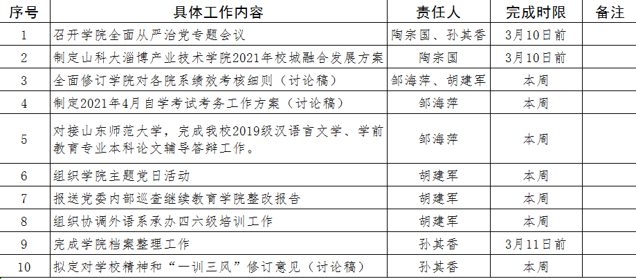 继续教育学院第3周工作计划表(2021.3.8—3.14)