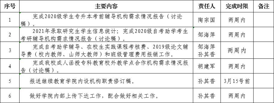 继续教育学院第8-9周工作计划表(2021.4.12—4.25)