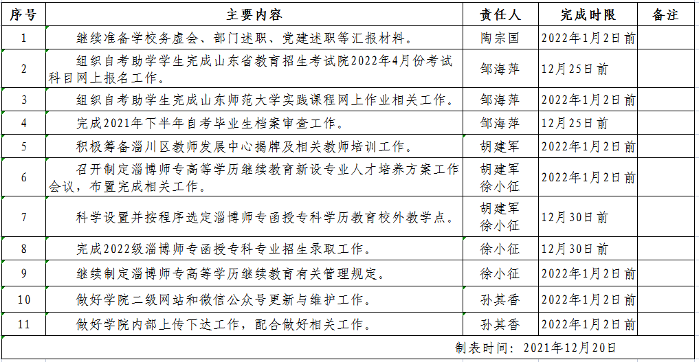 继续教育学院周工作计划表(2021.12.20-2022.1.2)