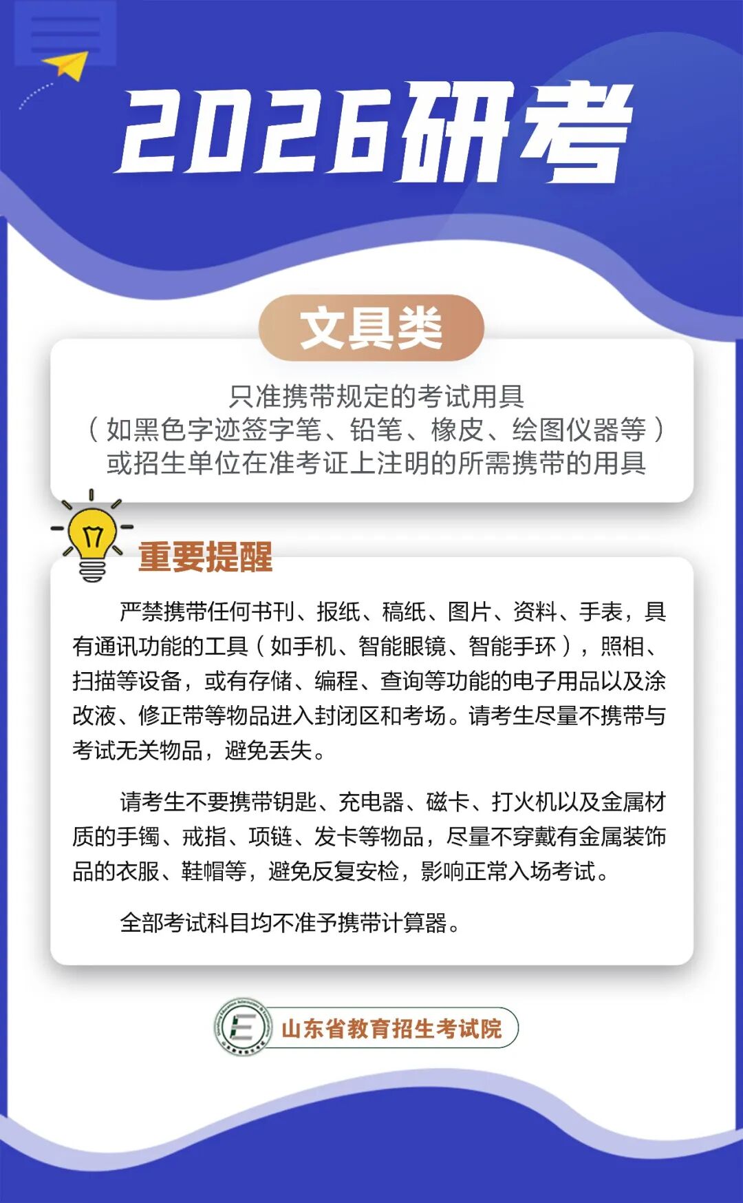 2026研考 | 考试必备物品清单来了!还有这些注意事项要牢记→