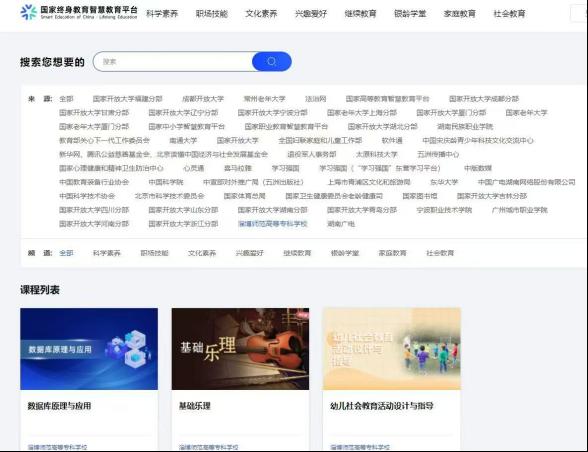 近日,教育部联合多家部委和单位启动“终身学习优质资源共享行动”,推出近800门优质特色课程,在国家终身教育智慧教育平台上线。我校《幼儿社会教育活动设计与指导》、《数据库原理》和《基础乐理》等三门课程入选。